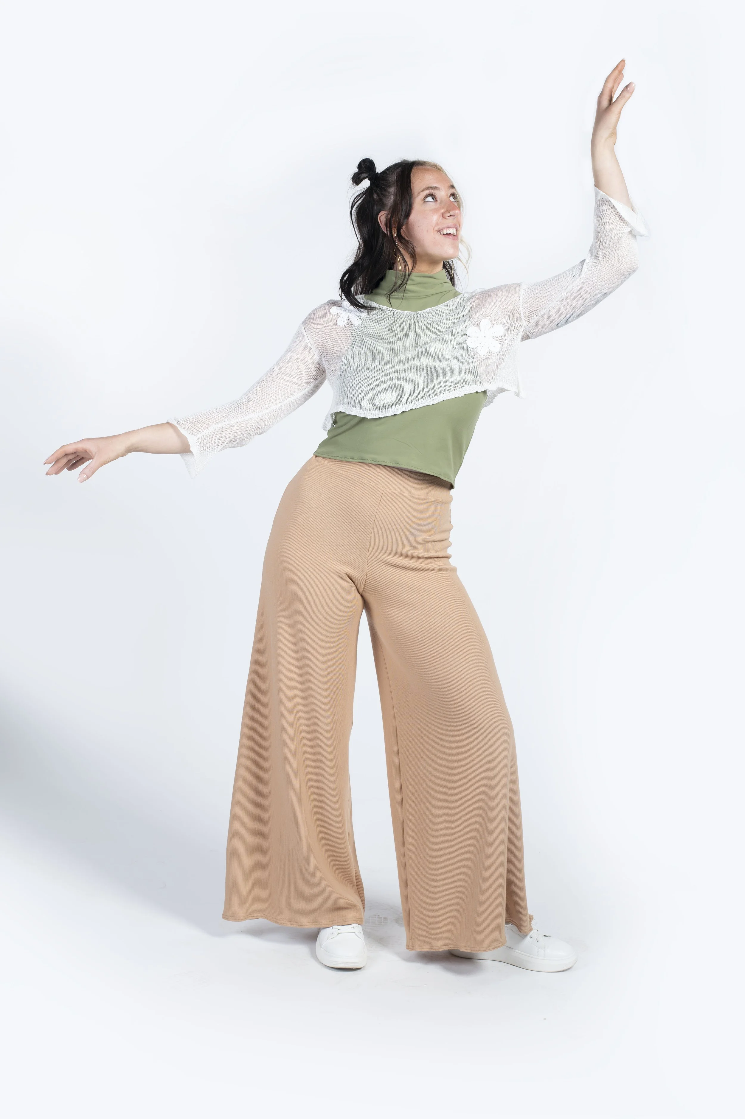 Composed of separates, Season of Growth is a casual daywear collection created through sewing, machine knitting, and crochet. I implement earth tone colors, textured fabrics, and nature-based motifs inspired by Neena's garden, and the landscape of my hometown to create a springtime aesthetic. In this collection, I hope to share the joy and comfort I find in the spring season with others.